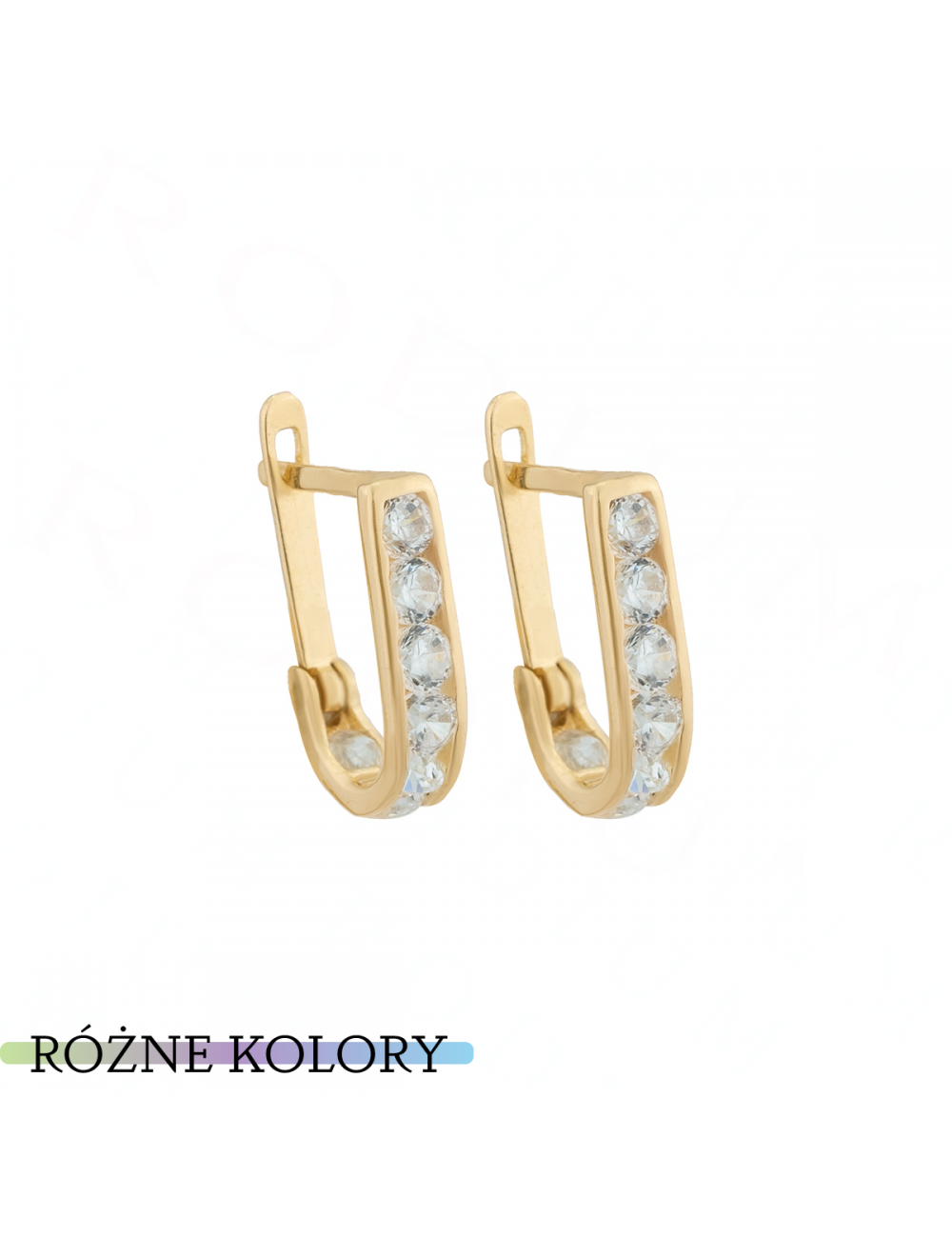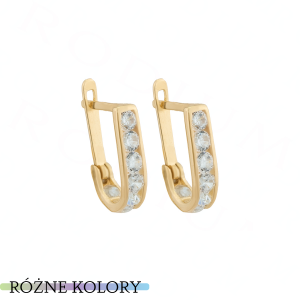 Kolczyki Złote Zatrzaskowe - Przecinki z Kolorowymi Cyrkoniami