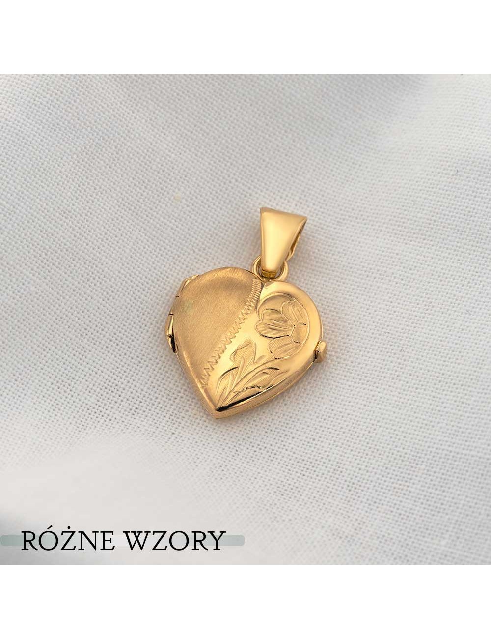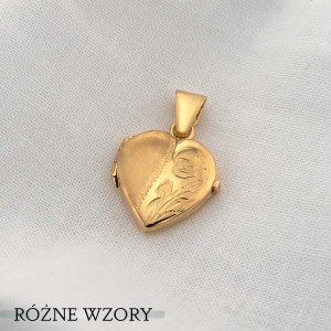 Przywieszka Złota - Puzderko serce grawerowane matowo błyszczące